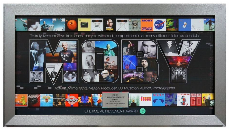 Attached is an example of what we are aiming for, it is a lifetime achievement award for MOBY. We want it to be similar in design and have pictures inside the SHARK TANK logo with a black-ish background.
