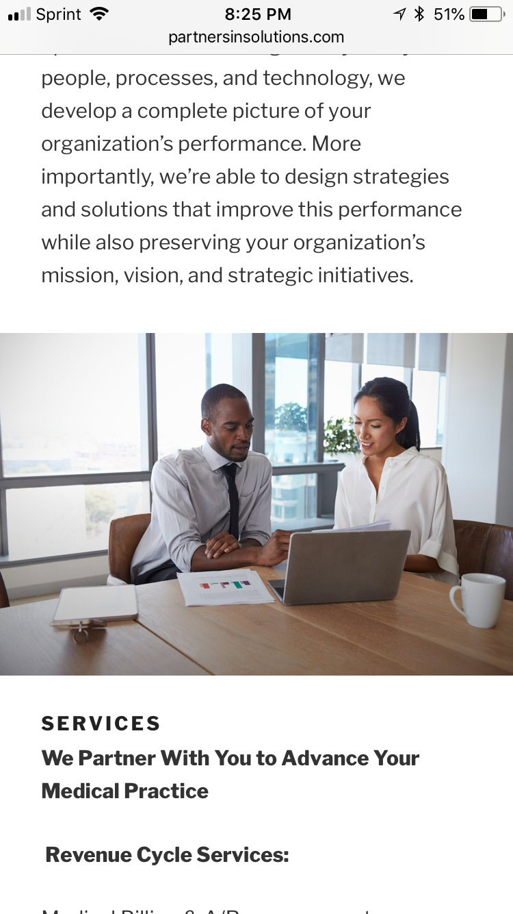 2. The Drop down menu for services should have hyperlinks ( for each service)Leading to a page that provides detailed info about that specific service. Our services include: Revenue Cycle Management, Regulatory Compliance, Human Resources Management, & practice Management.