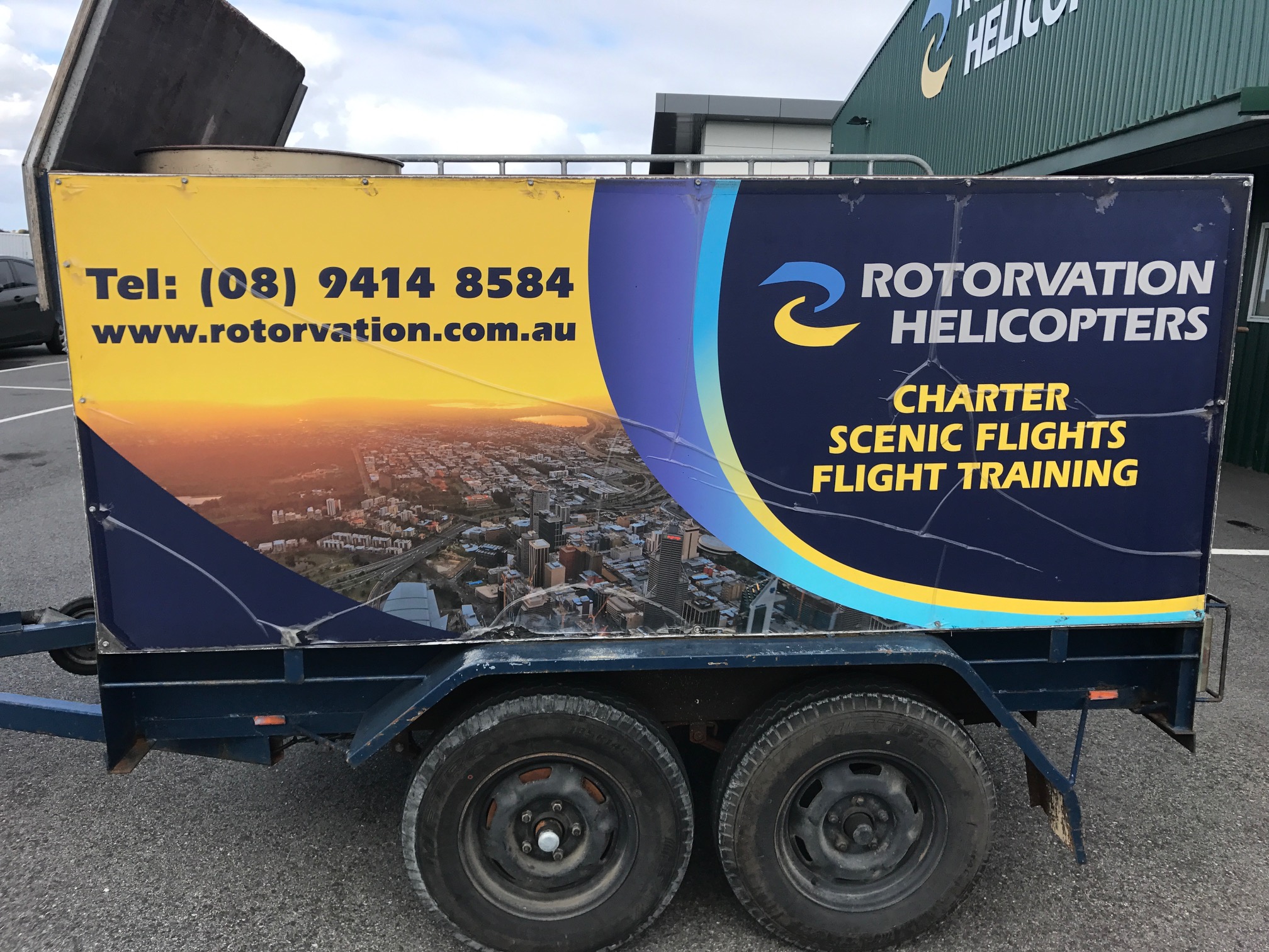 Helicopter company trailer signage