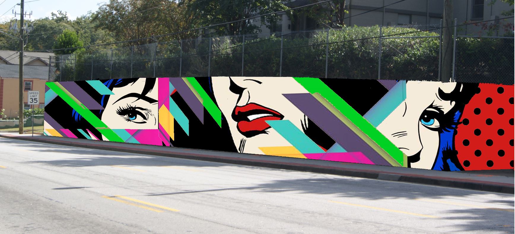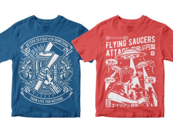 - Image that fills a large space on the front of the shirt. Picture/drawing, cartoon/poster look.