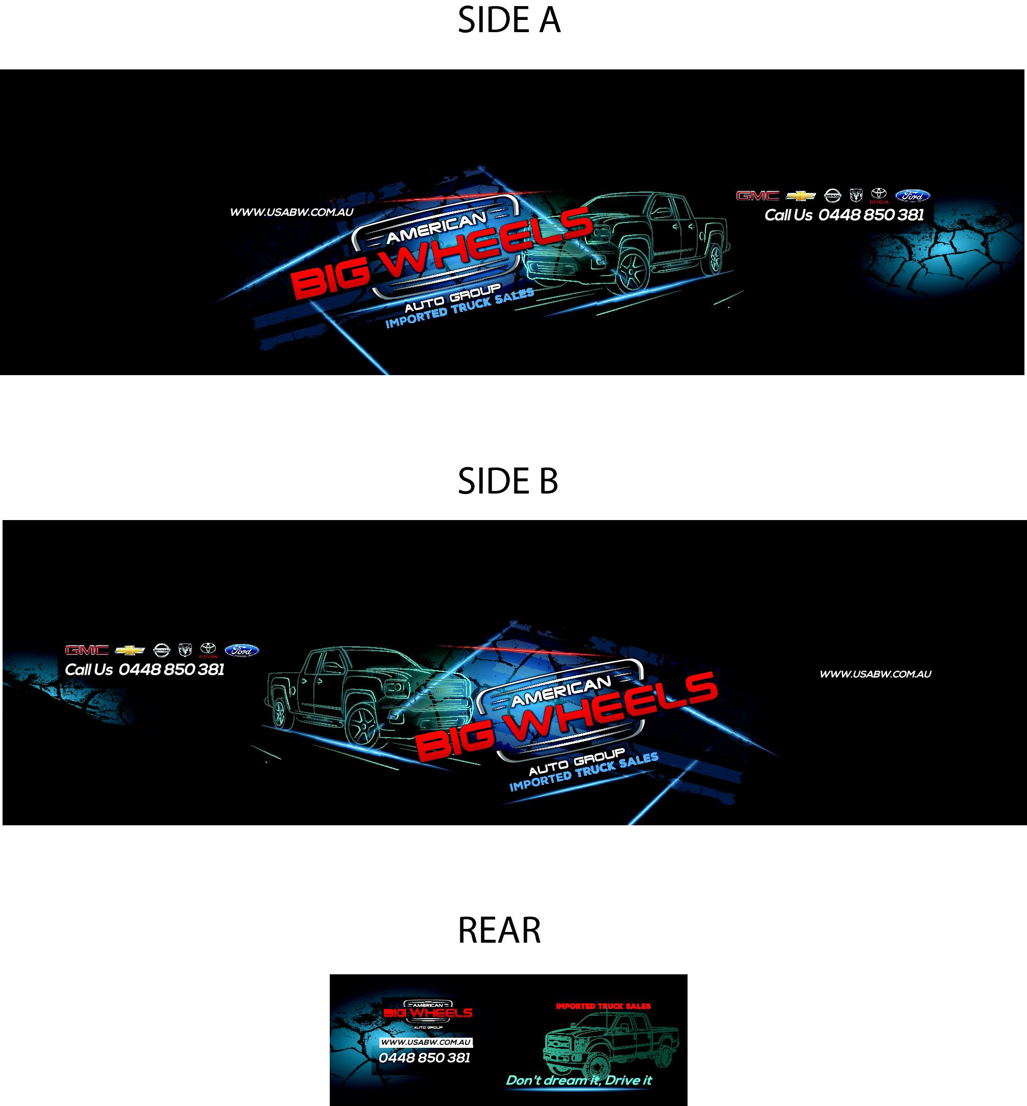 We need a design for a new company based in Sydney NSW called American Big Wheel Auto Group. We sell imported luxury pick up trucks, including GMC, Ford, Chevrolet, Ram, Toyota, Nissan