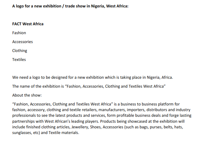 Logo design for Fashion, Accessories, Clothing and Textiles West Africa (FACT West Africa)