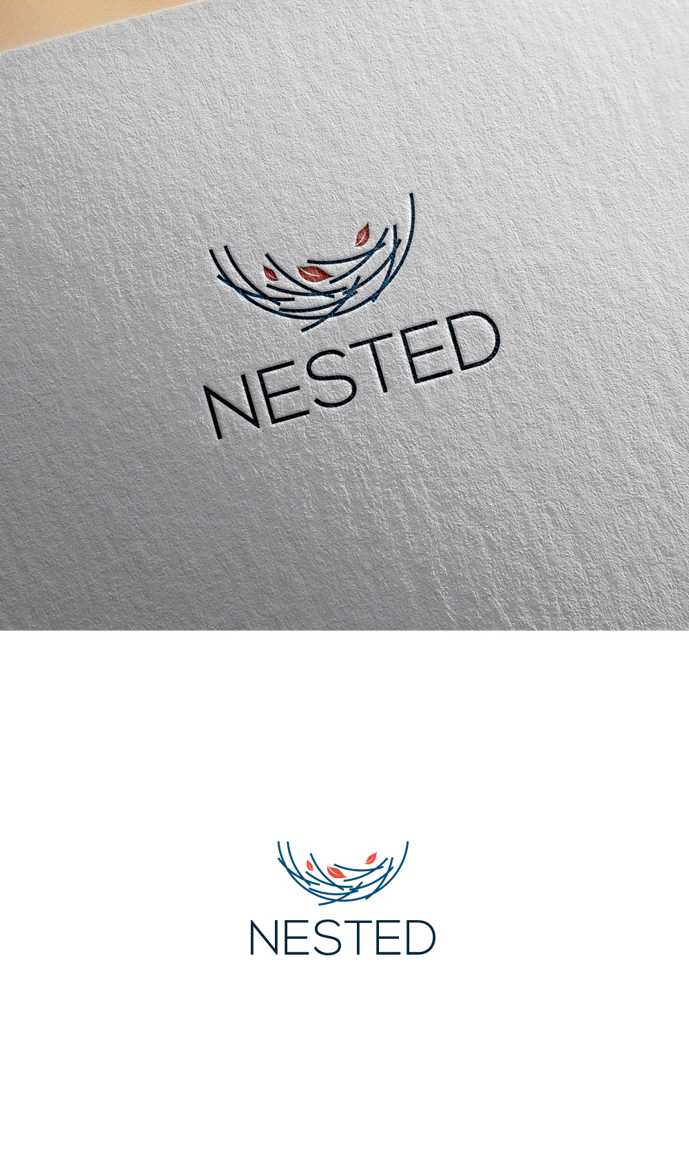 Real Estate brokerage, relocation division needs a logo (with icon) Ie "Nested" accompanied by a Nest icon (bird nest). This is for a residential Real EState brokerage, relocation division. NESTED is used to illustrate a when a person or family reaches their end destination (HOME or DWELLING)
