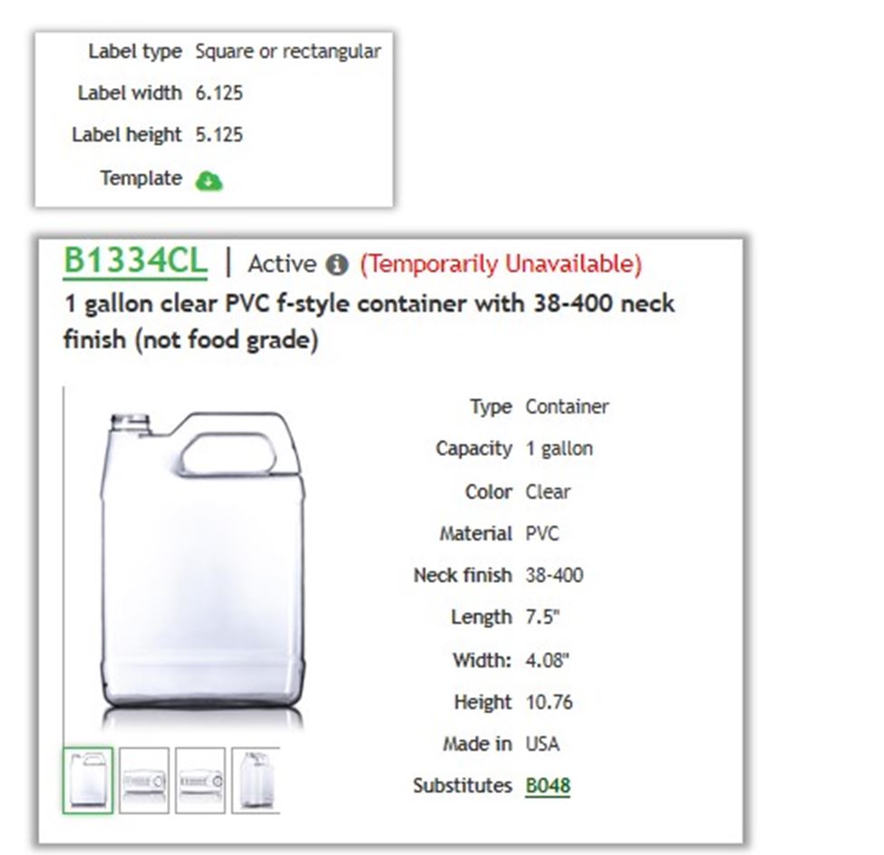 Take a look at Chemical Guys Extreme Body Wash & Wax with Color Brightening Technology (64 oz - 1/2 Gal). This is exactly the type of packaging we will be using. In terms of dimensions, the label will be going on a 1/2 Gallon Broad side rectangular jug just like the Chemical Guys product mentioned.