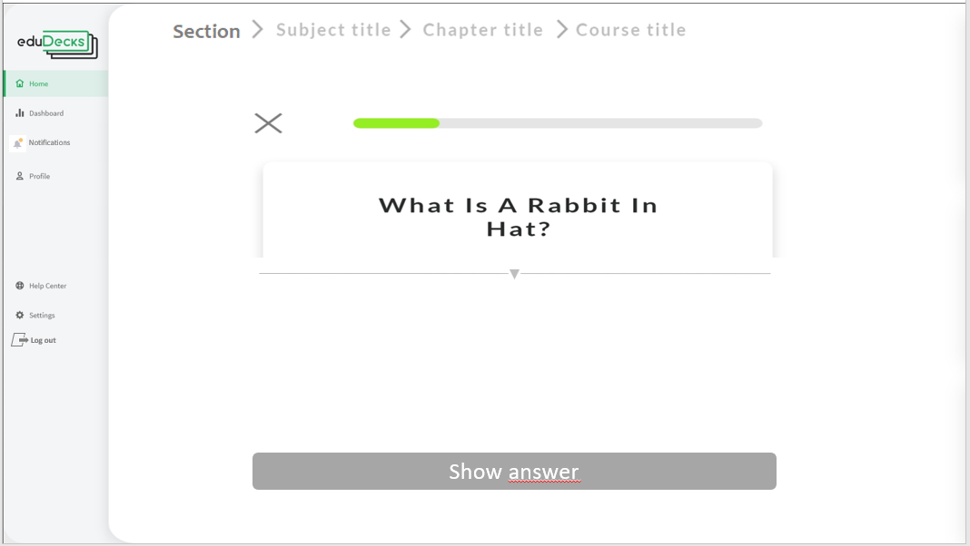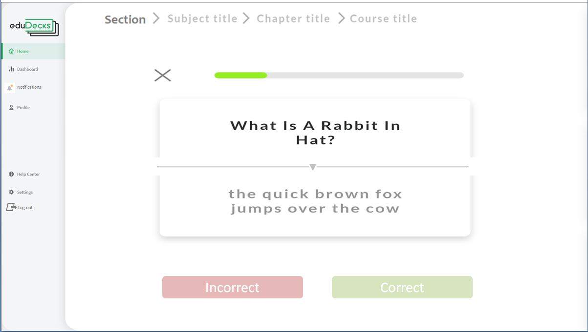 • A notification panel, suggesting to him the revision of such or such pack of cards, or of such or such concept in the rest of the contents