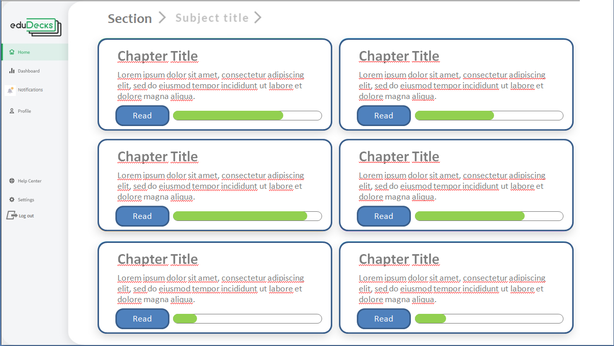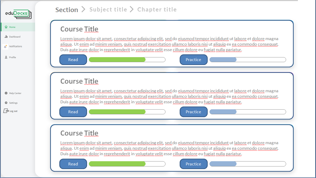 - - 1 student dashboard design with the following elements: