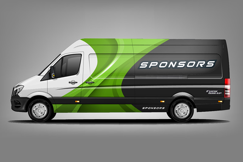 We would like simple and modern design covering both sides plus back of the van. We would like the sides to be covered only half way starting from the back and ending half way on a sliding door.