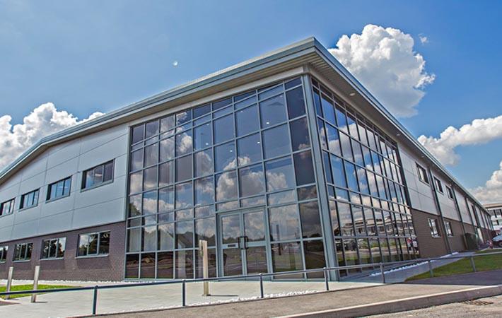 We are looking for a drawing/render of the outside of a high-tech R&D center in the UK. It will be a state-of-the-art 100k square foot facility in Peterborough which will be a showcase for advancement in composite materials and technology. We would like to help people imagine the building where this will take place. It should have our logo, should look advanced and high-tech, and look big enough to house a significant amount of R&D and manufacturing. Bold, beautiful, forward-thinking.
