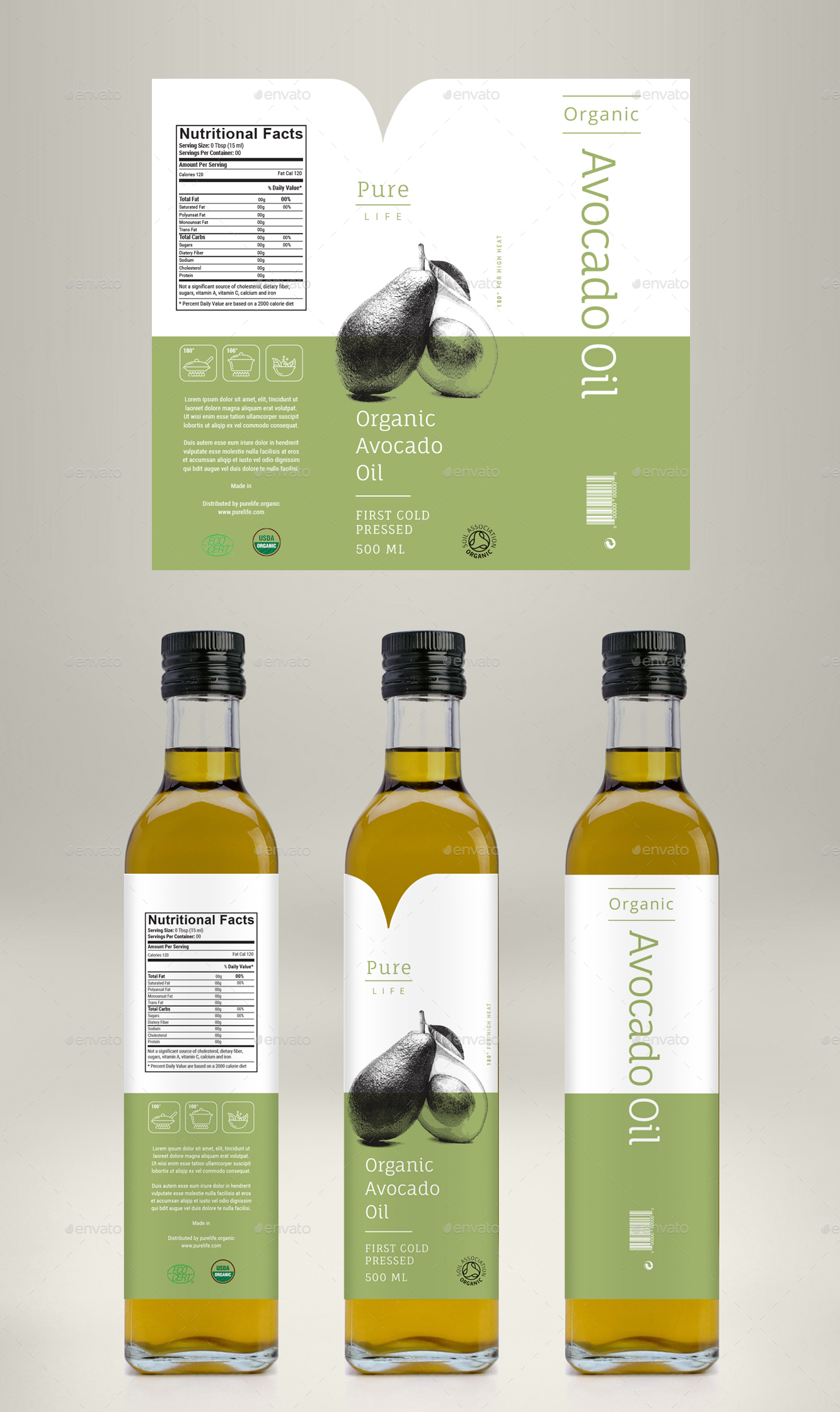 We are a distributor of healthy and organic food in a process of adding avocado oil to our selection of products. The oil will be packaged in round Dorica bottles and we are looking for a simple and elegant label design highlighting both culinary and health benefits of avocado oil. The label size should be a one piece square, approx. 5.5 x 5.5 inches (14 x 14 cm). The oil will be sold under brand name Avocanti. Most label designs currently on the market feature some form of the avocado fruit, some have a depiction of oil extracted from the fruit, etc. but we are obviously open to other ideas and don't want to constrain designer's creativity in any way. The label should be designed to wrap around the bottle in one piece. Attached images are for inspiration only