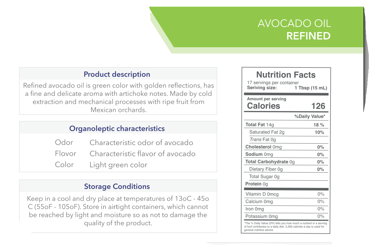 - Ingredients : 100% Pure Extra Virgin Avocado Oil