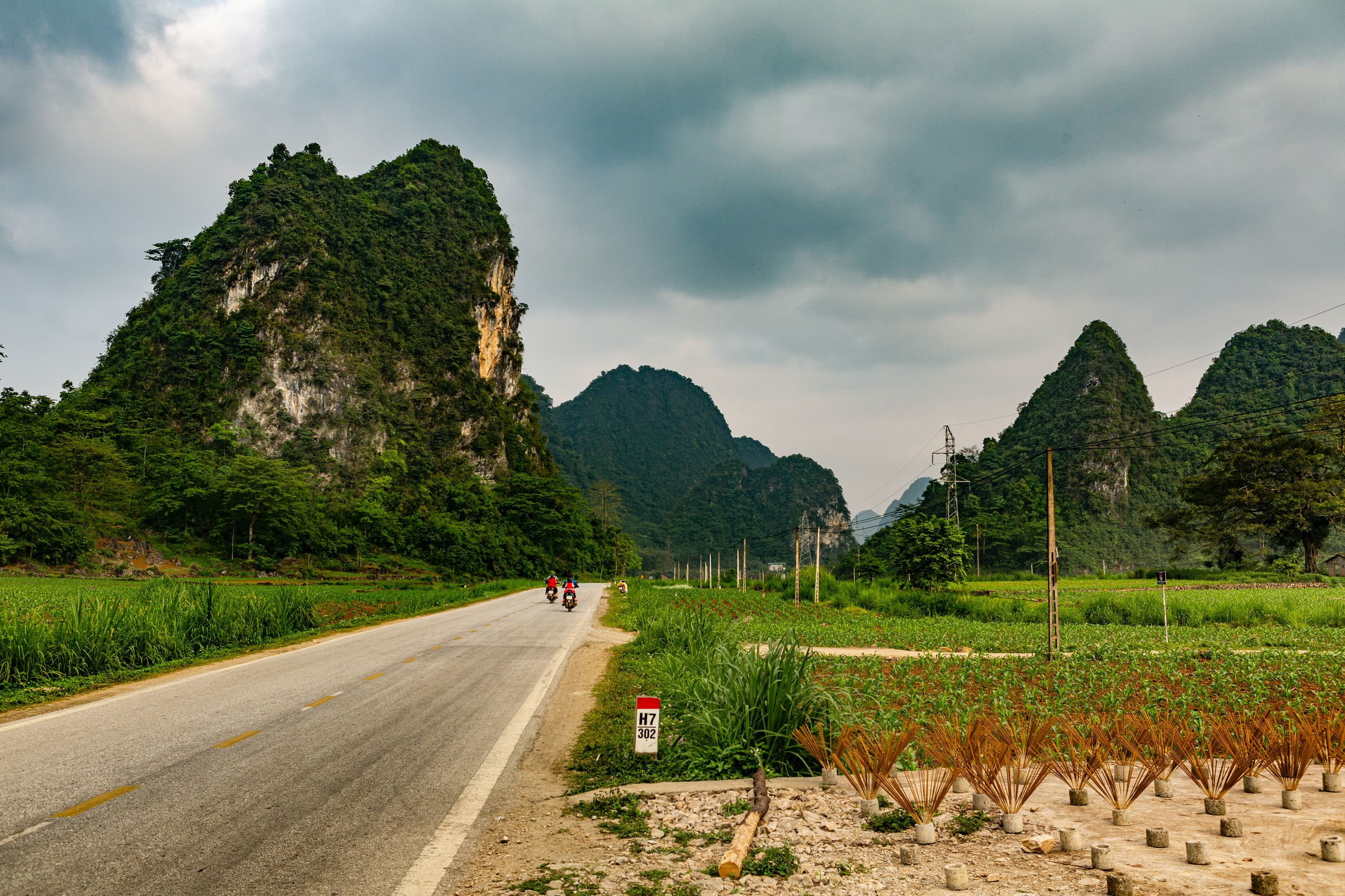 A motorbike riding on the open road of Vietnam.