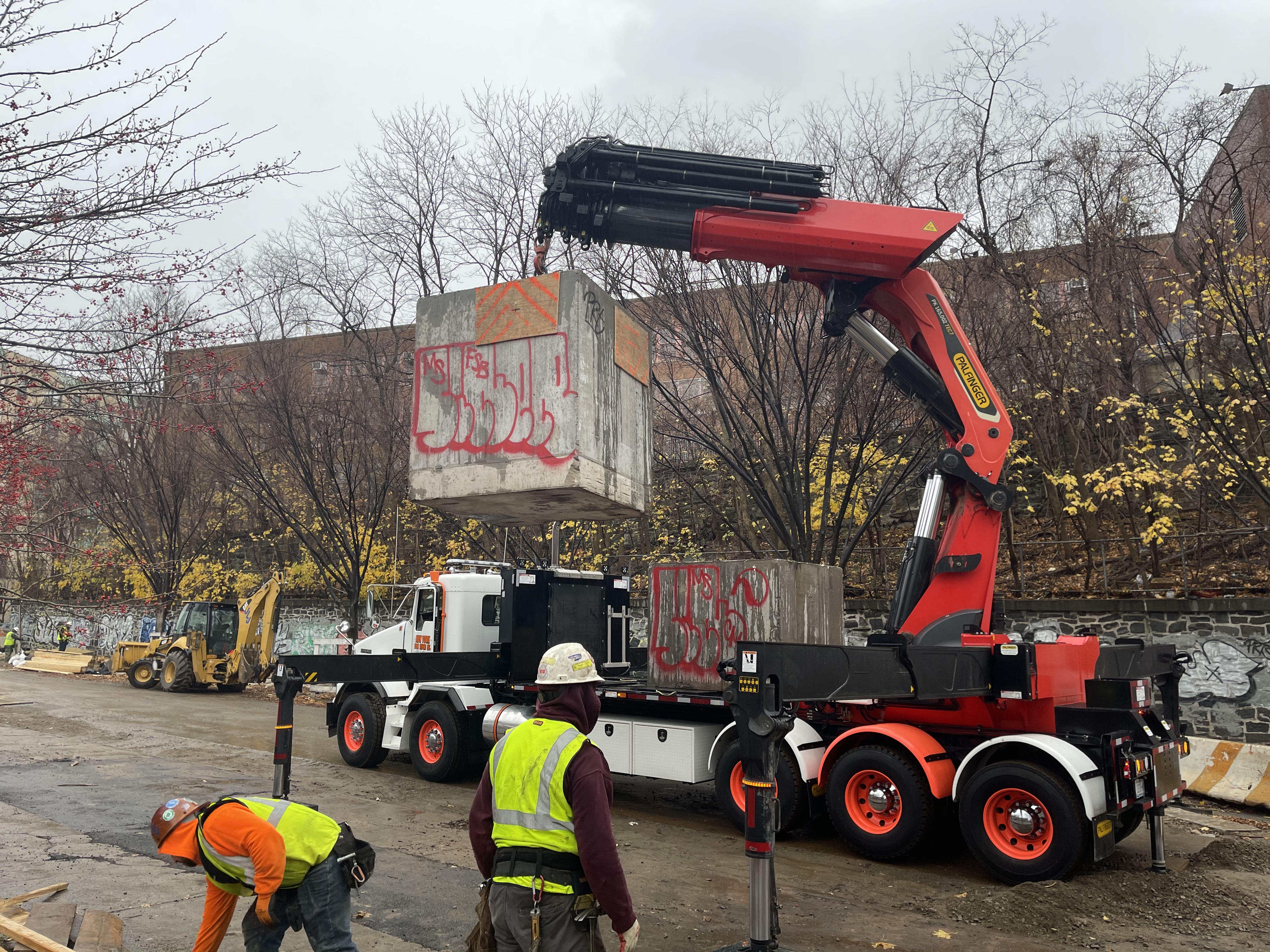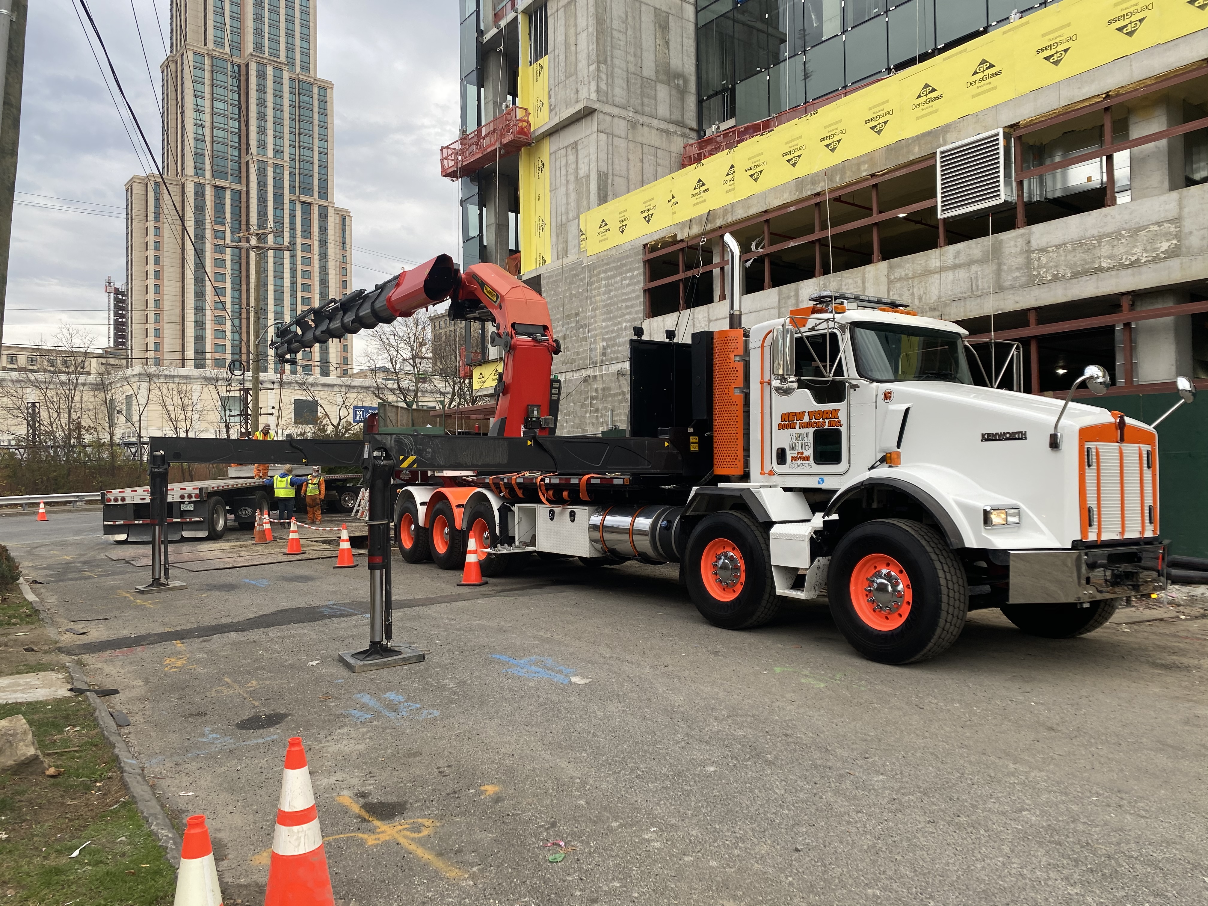 I need a copy logo to that will be part of our marketing plan. The logo should show a truck with a crane on it. We also want NY City skyline as the back drop because we work in and around the city