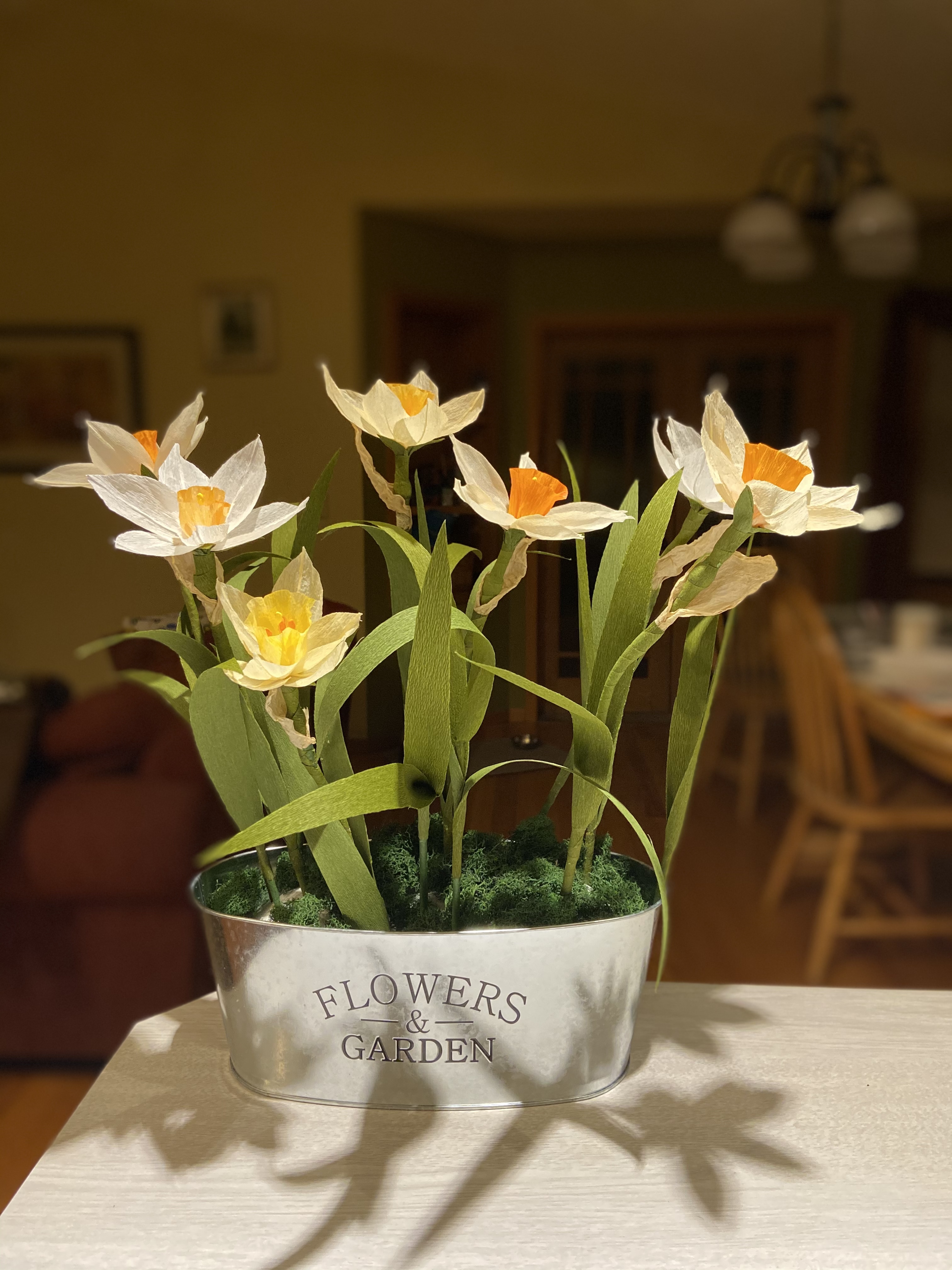 I need a logo for a small business selling handcrafted paper flowers. We will provide local delivery or ship throughout the United States. Flowers can be purchased by the stem or by the bunch. Greenery is included, either handmade or dried. These products last for several years with proper care and are wonderful to brighten your spaces during the winter. Design should be clean, but colorful and work for stickers and signage.