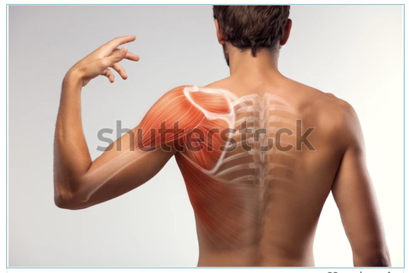 The stock photo shows an excellent posterior view of the shoulder that can be modelled on. The shoulder is better from the back because you can include more of the anatomy seen from behind.