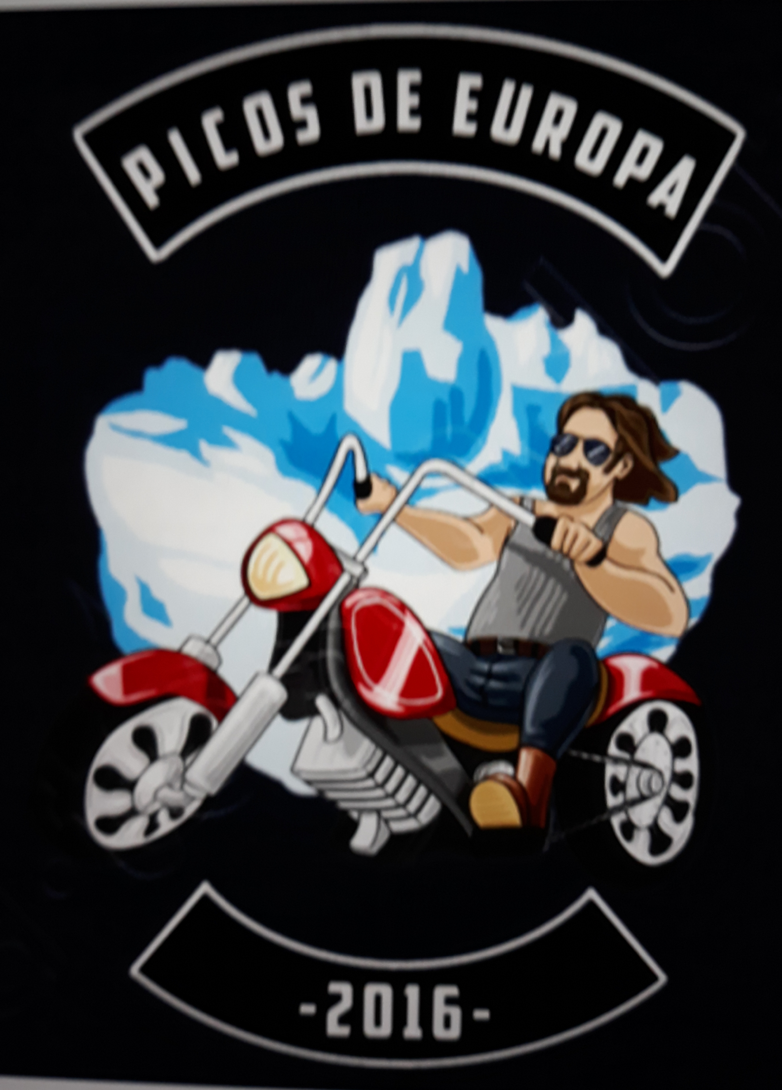 A Harley-type motorcycle with PICOS DE EUROPA CANTABRIA. Pots,