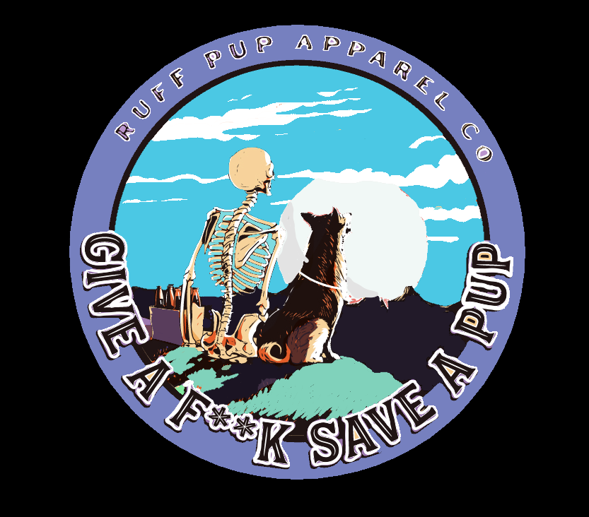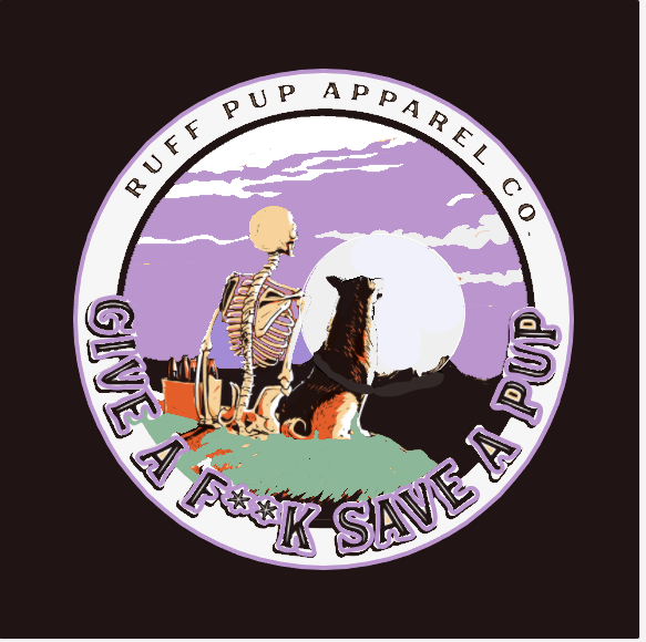 Our brand centers around saving dogs lives. We need a design that will stand out and has more of a vintage feel. Our clothing consists of t-shirts hats, etc and a portion of the profits go to shelters and rescues for dogs. Our brand takes a more of the unapologetic and abstract route to get our message across rather than the typical corny dog brands do. A brand that you would see someone in tattoos wearing. For the design, we want a dog and a skeleton person sitting down facing with their backs turned looking either at either a night sky or a sunset. I would like a backwards hat to be on the skeleton. We want the words "GIVE A F**K SAVE A PUP" on there along with "Ruff Pup Apparel Co."