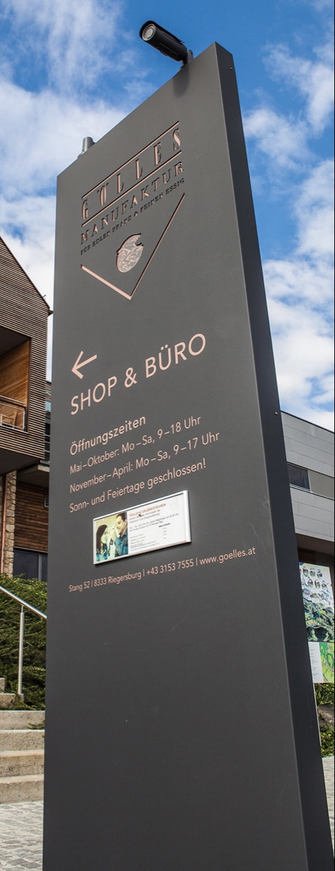 My veterinary clinic is not clearly visible from the street and I want to place a Pylon next to my driveway. I want a modern, elegant straight Design, the Photo shows the sheduled place. One can see the clinic on our Homepage: www.animal-care-center.at