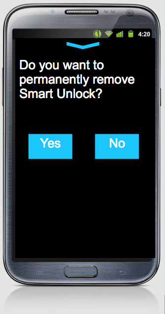 • At the bottom of the screen there will be a disabled button which will be activated by sliding that button upwards (and the design should indicate that). Once slides upwards it will open a screen with the text: "Are you sure you want to disable Smart Unlock Screen?" and it will have two buttons for yes and no.