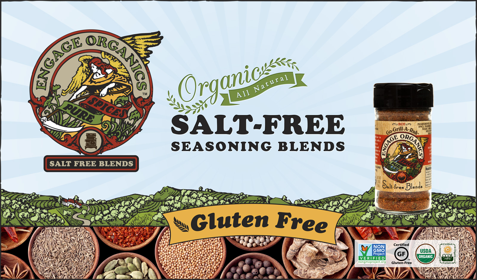 Engage Organics is a salt-free, gluten-free, organic, Non-GMO, and local seasoning blend company.