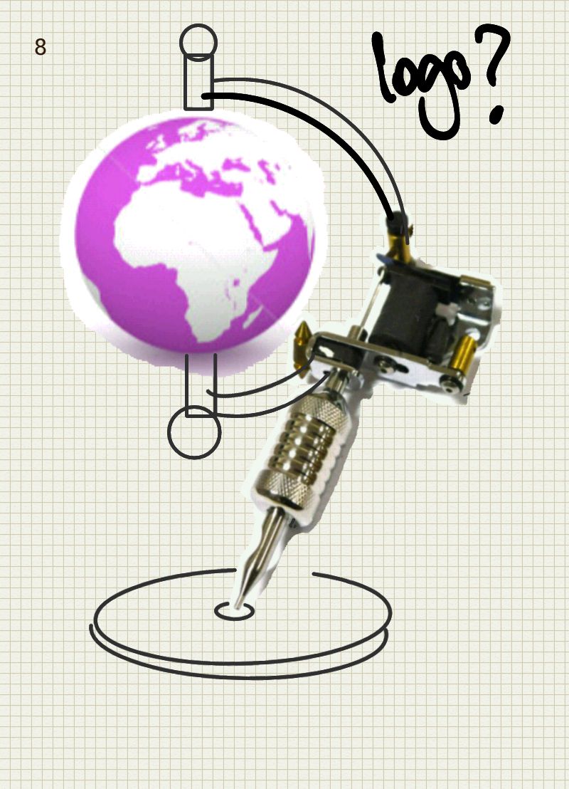 We need a logo for a new Tattoo Website. We have the text but need a graphic to sit along side it. The idea is to have a tattoo machine supporting a globe. The three colors we're using are - (Purple #652581) - (Flesh Color #EAB490) - (Black #212121) Please no other colors.
