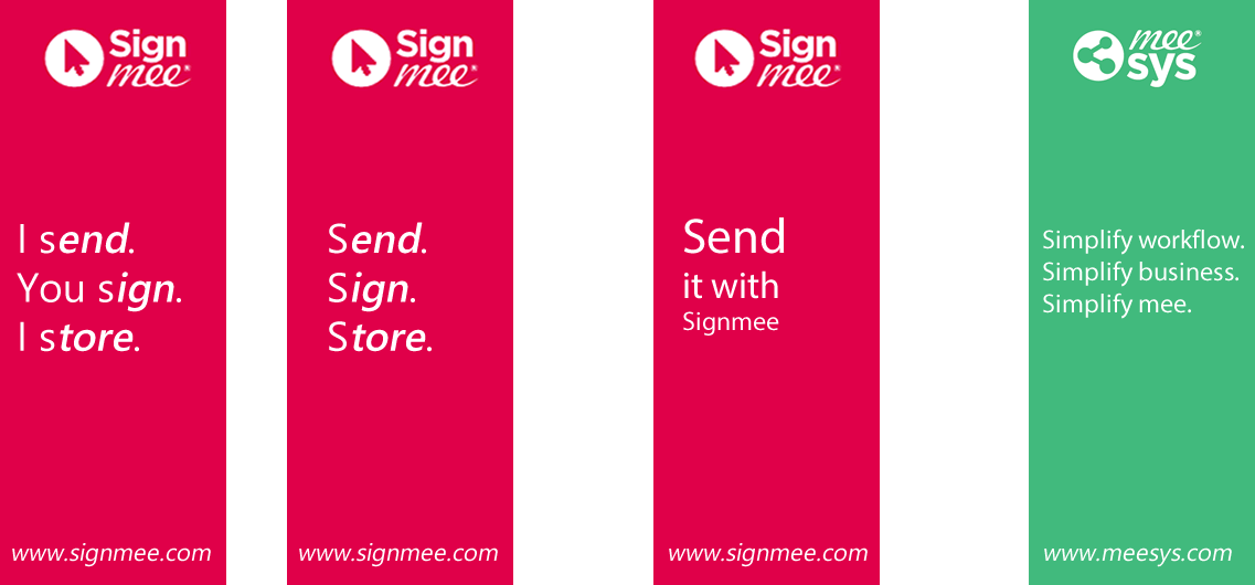 The banners are for signmee.com, with our new slogan 'Send it with Signmee', and 'Send. Sign. Store.' or 'I send. You sign. We store.'