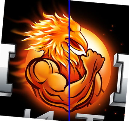 In the logo design I would a flaming muscular Phoenix bird flexing its right arm which is circular to form the letter O in Phoenix.