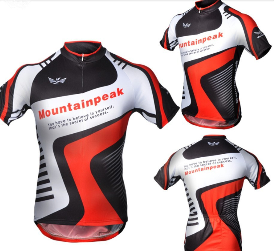- Mountain peak jersey: I love the style of the red and black and white, and how the design uses the 'chest to sleeve' and 'back panel to sleeve' joins well. I like how it's not a symmetrical design.