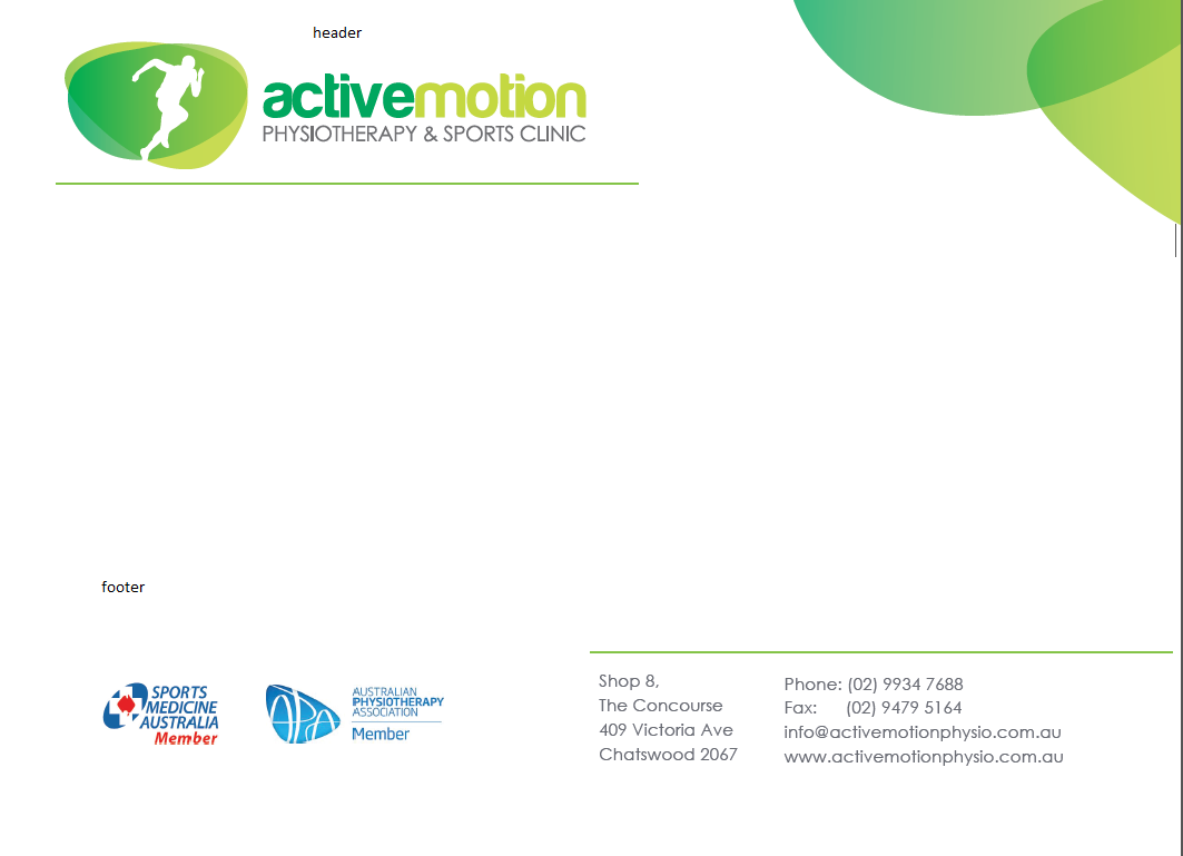 ACTIVE MOTION Physiotherapy Chatswood Friday, 30 May 2014 06:08:37