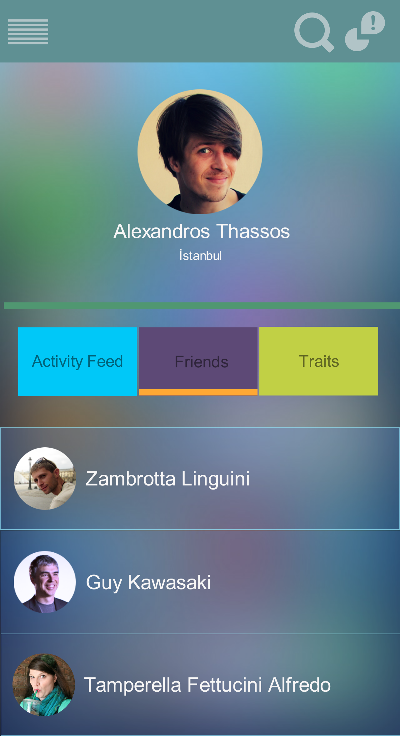 The core concept of the application is explained above. Remaining screens such as detail profile screen, settings, notifications, friends, sliding pane, are supplementary and self explanatory.