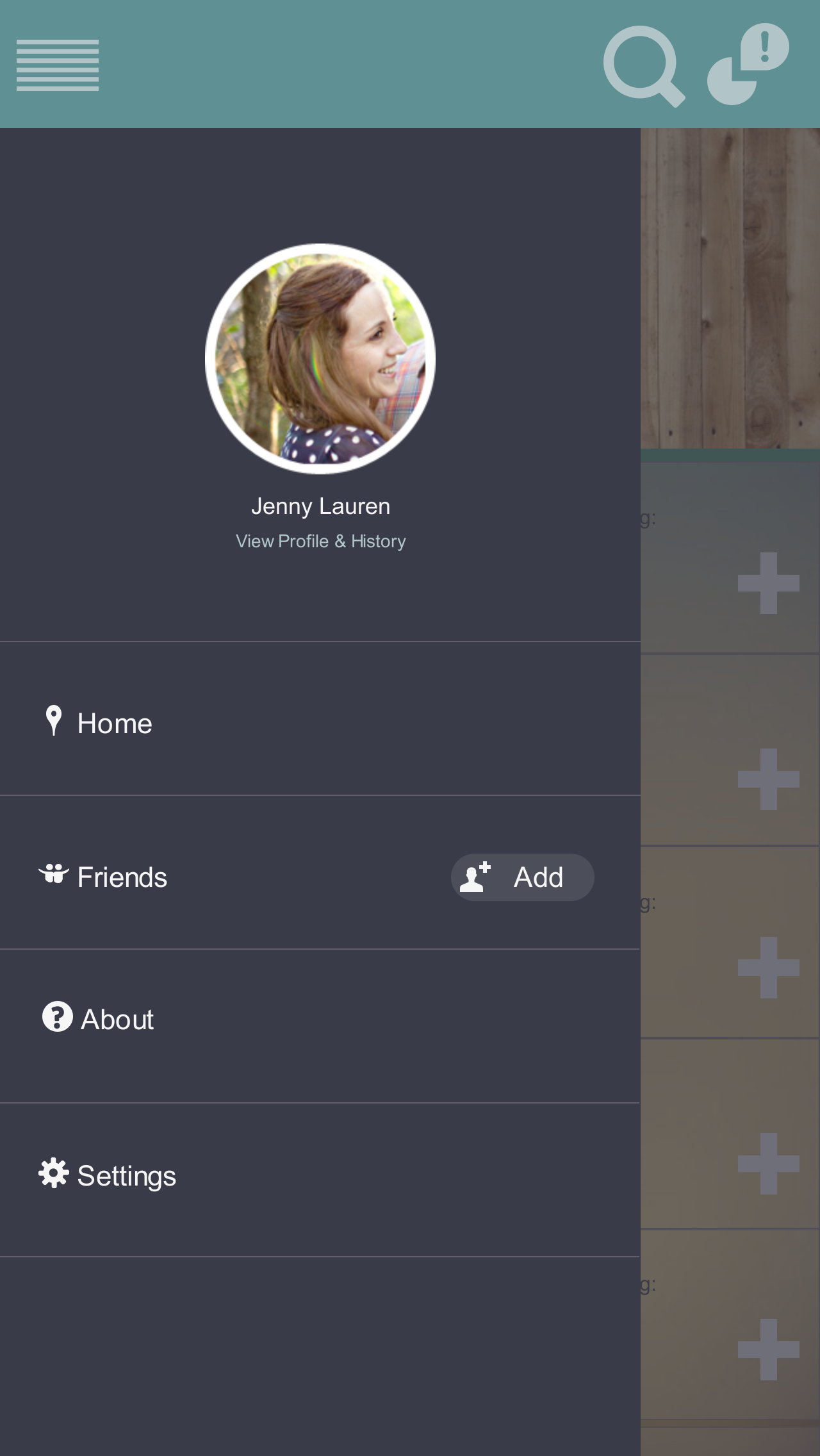 There should be five rows: Home - Friends - Add Friends - About - Settings