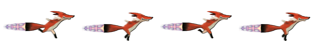 - Create a four frame animation of a chicken moving straight right with a rocket blast coming out of the back. Each frame should be between 110-150px height and up to 250px wide.
