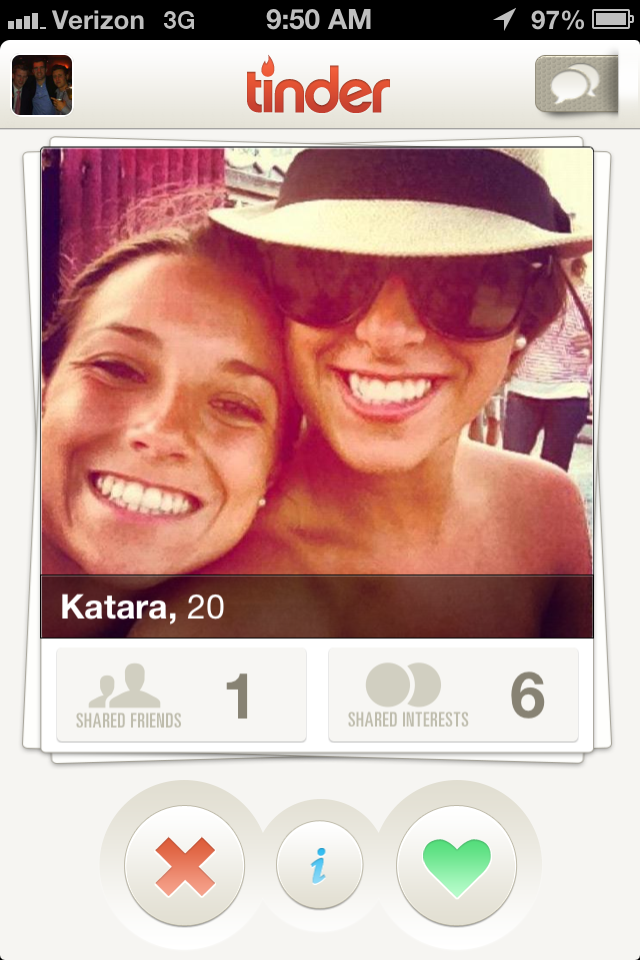 Tinder: simple and clear slide throughs (yes/no)