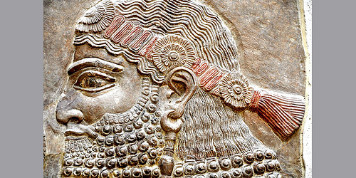 Muscular Assyrian male with pleated hair and beard (see picture)