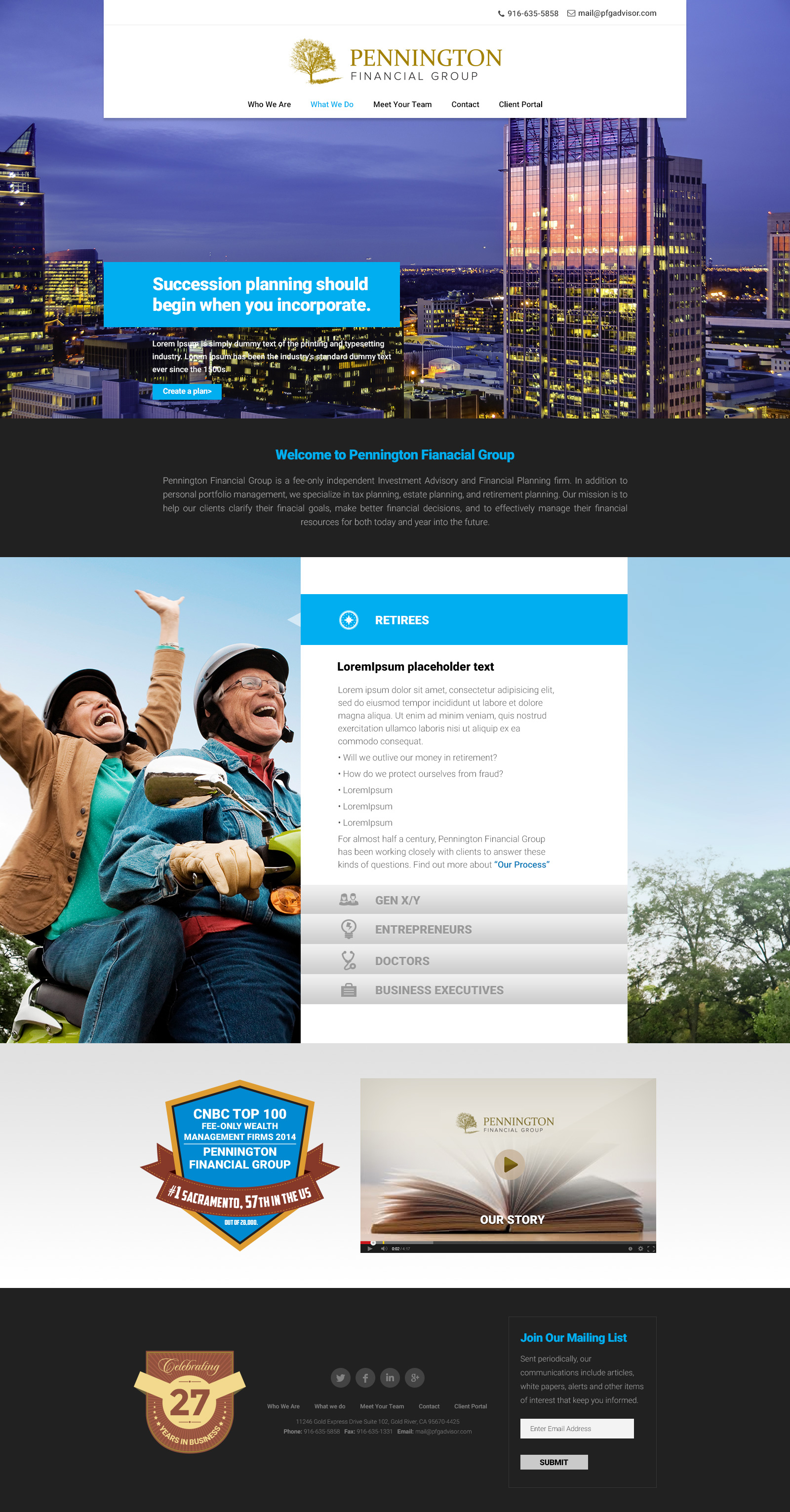 We are a Northern California based Financial Planning firm that is looking for a modern logo that conveys experience, progressive thinking, trust, and integrity to clients. The name of the firm is Pennington Financial Group.