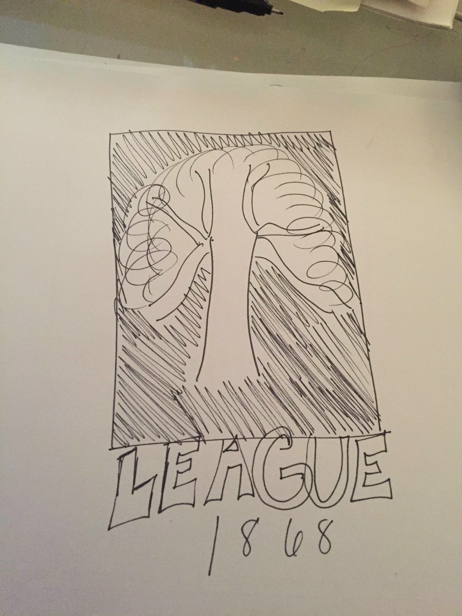 File 1 (League 1868 oak), shows a rough drawing of one idea that we have for the logo. One version should show all of the writing and the oak in black and another version should show the oak and the writing in blue.