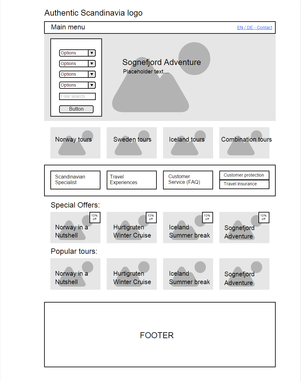 - We want to remove the popular tours part and are instead looking to replace this with picture boxes the following subjects Scandinavia Specialist, Special Offers, Contact, Norway (or Norway Tours), Sweden (or Sweden Tours), Iceland (or Iceland Tours), Combination Tours. Possibly also Lapland, Winter, Northern Lights, Fjords and Capitals. Some of these categories can be smaller or perhaps half boxes; i.e. Winter and Northern lights in one. If we end up with four boxes per line perhaps we could add a social media box next to the three first ones.