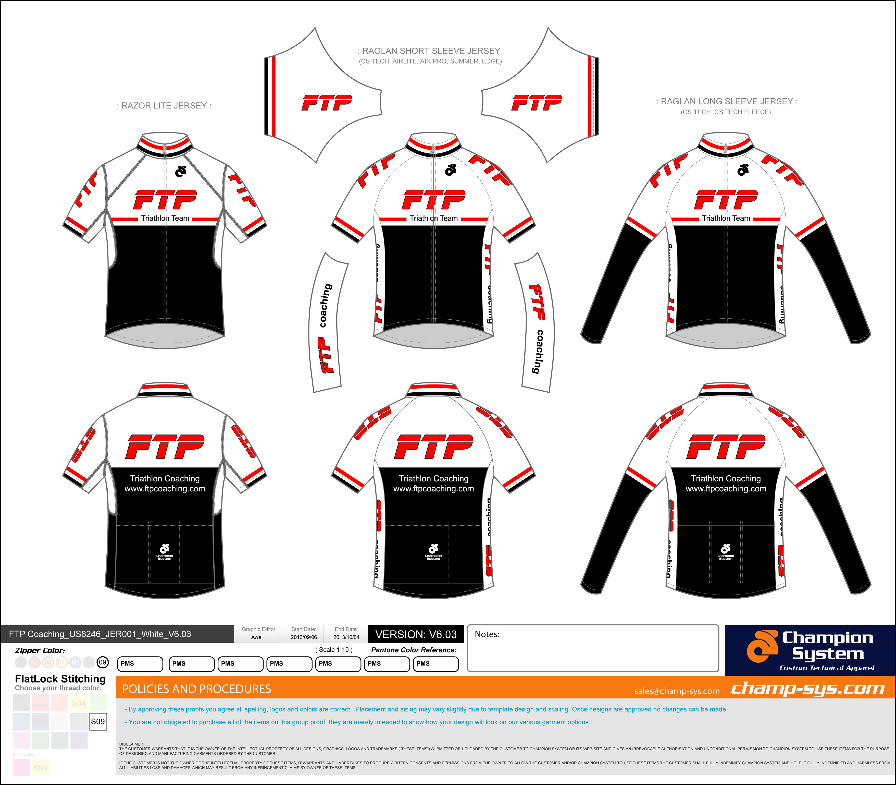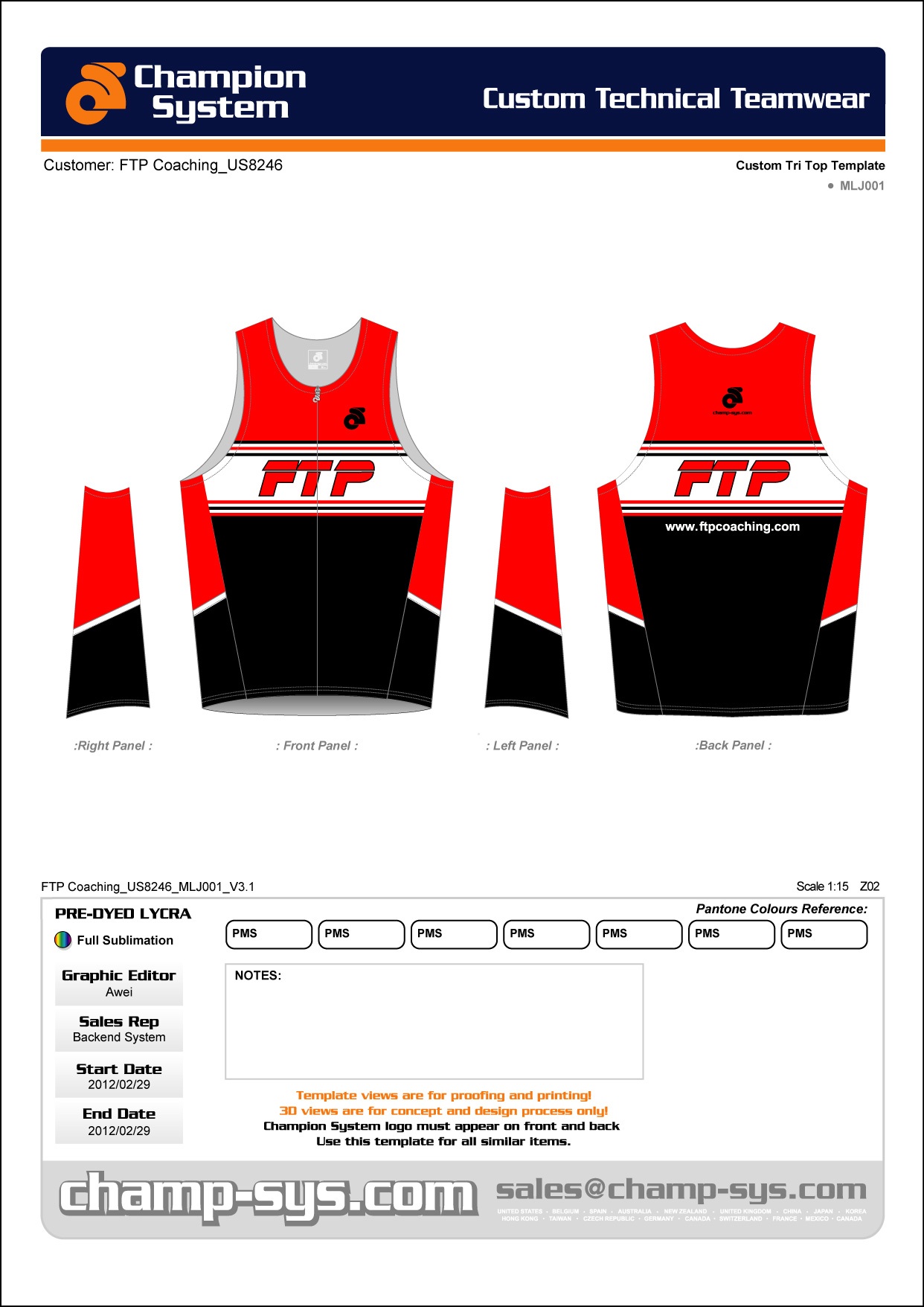 Key colors are scarlet red, black, white and sometimes grey. Final design should clearly display the "FTP" logo and preferably "Triathlon Team" on the back. The uniforms should be clearly visible from the front and back.